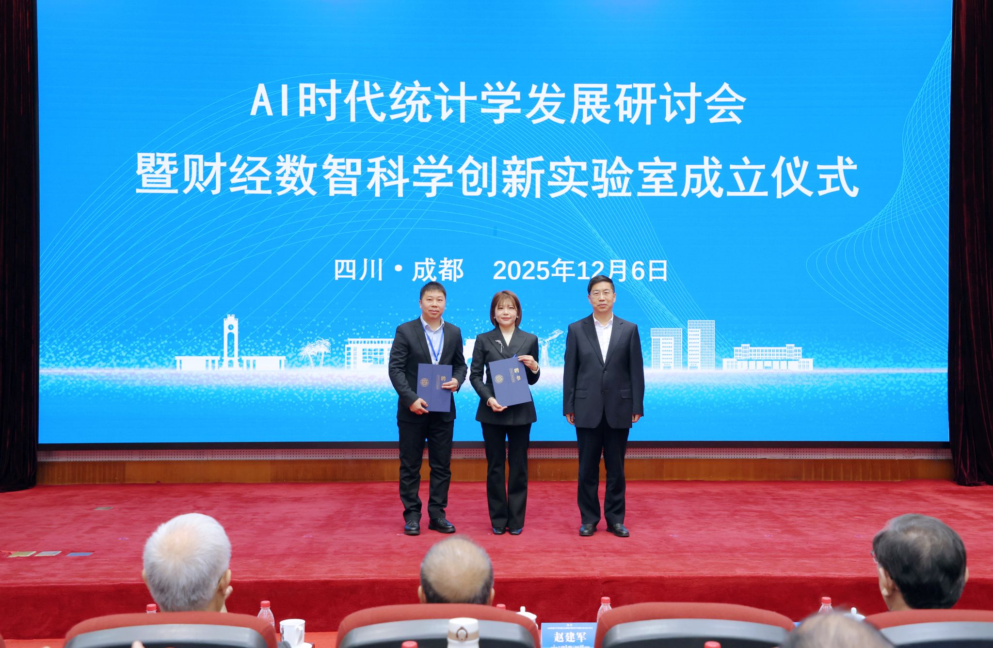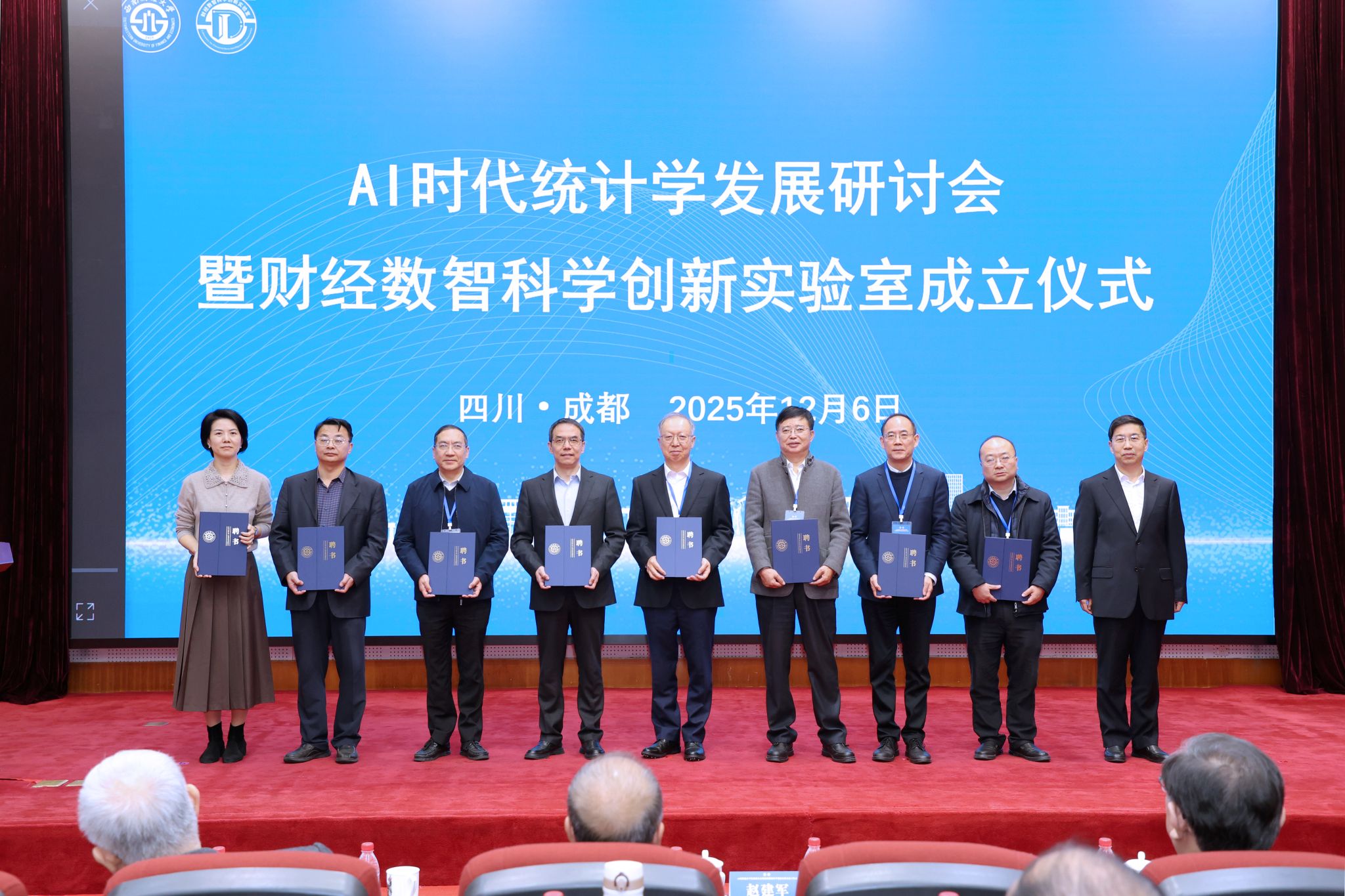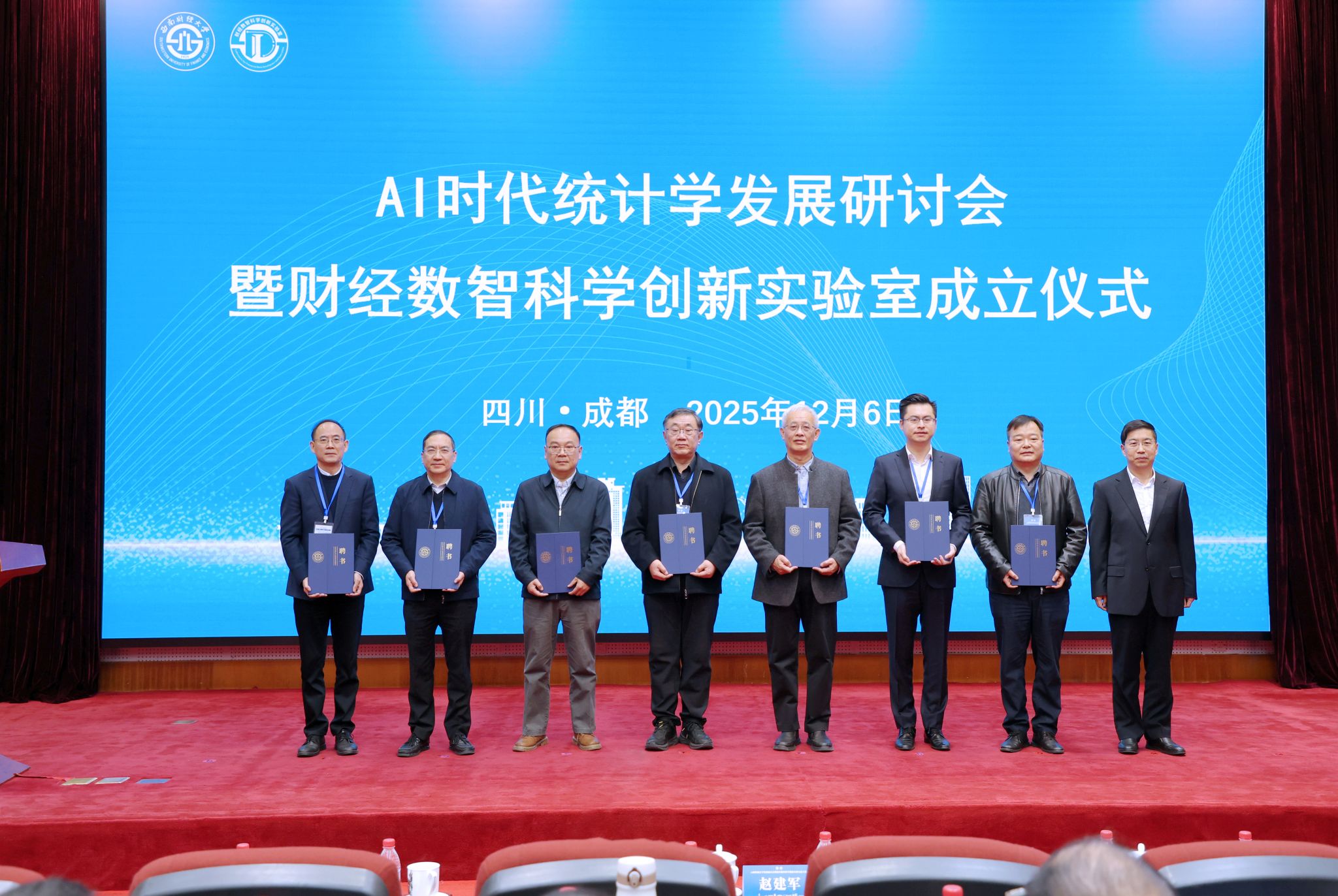 关于成立“财经数智科学创新实验室”的决定》。文兼武,邱东,赵建军,李永强,国家统计局一级巡视员康君,国家统计局科研所首席研究员许亦频,四川省统计局党组书记、局长曾俊林,中国劳动关系情侣a片校长傅德印,内蒙古财经大学原校长杜金柱,国务院学位委员会统计学科评议组召集人、中国人民大学统计情侣a片原院长王晓军共同为实验室揭牌。赵建军为实验室建设管理委员会委员,学术与技术委员会委员,以及实验室主任、执行主任颁发聘书。实验室主任兰伟教授就实验室建设目标、研究方向与发展规划作了汇报。