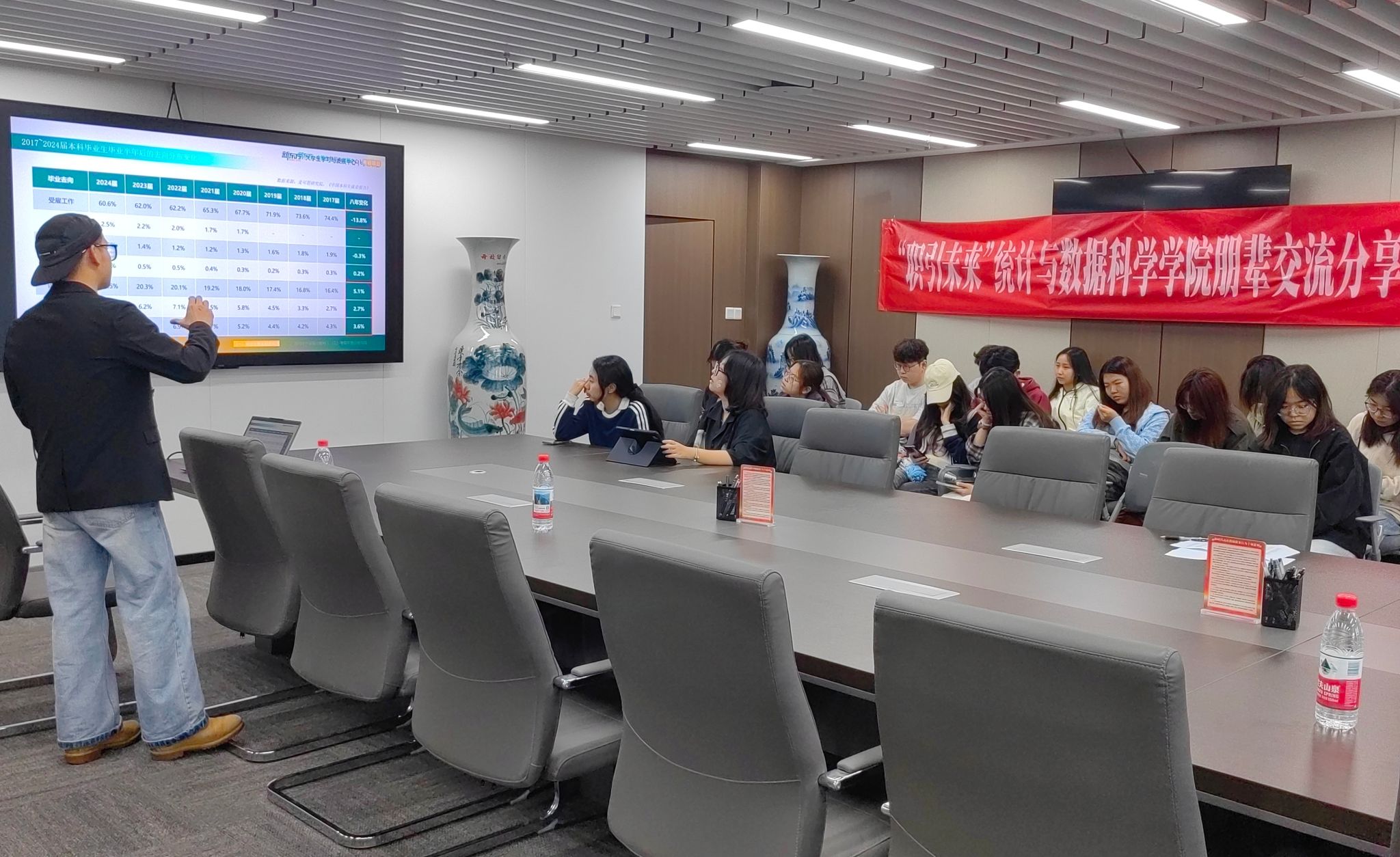 “职引未来”朋辈交流分享会考研专场在诚正楼1320顺利举行。活动特邀情侣a片两位成功考研的大四学子与新东方大学生学习与发展中心讲师,为在场同学带来精准、实用的考研备考指导与经验分享。